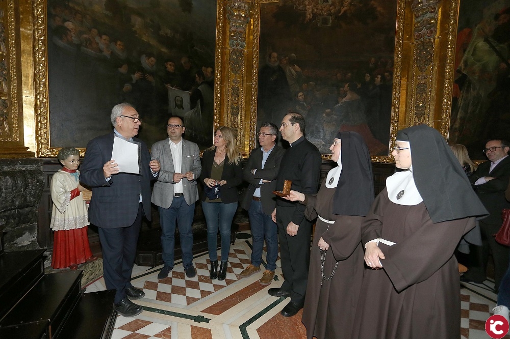 La alcaldesa accidental y concejala de Fiestas, Eva Montesinos, ha asistido hoy jueves, junto con el concejal Síndico del Ayuntamiento de Alicante, Carlos Giménez, y el edil de Seguridad, Fernando Marcos, a la prueba de llaves para la apertura de la hornacina situada en el Camarín del Monasterio de la Santa Faz, donde se venera la Reliquia, en presencia del Secretario del Ayuntamiento de Alicante, Gonzalo Canet, y el capellán del Monasterio, José Luis Casanova, así como de las monjas Franciscanas Clarisas.