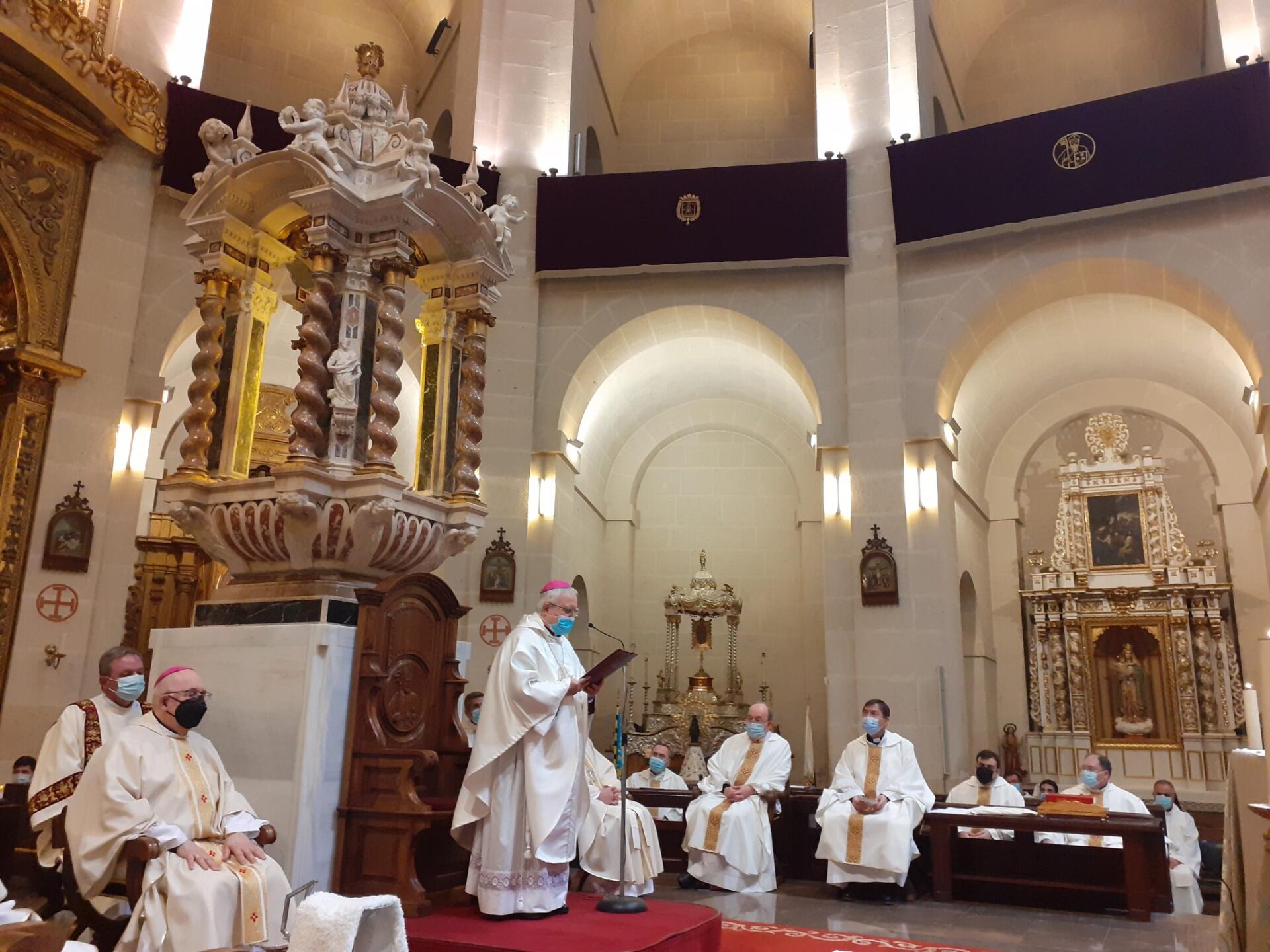 Ha sido en la Concatedral de San Nicolás de Alicante, a las once de la mañana, con la presencia de autoridades alicantinas, como el propio alcalde de la ciudad Luis Barcala, entes festeros de la ciudad y responsables militares. Ha estado arropado también por el obispo emérito de Canarias, Mons. Francisco Cases, o el obispo de la diócesis hermana de Albacete, D. Ángel Fernández. Y también por numerosos fieles y miembros del Consejo Diocesano de Pastoral y del Consejo Diocesano de Economía, Consejos parroquiales, las Delegaciones Diocesanas con sus Secretariados, la Escuela Católica, los Movimientos, Juntas Mayores de Semana Santa y Asociaciones Públicas de Fieles, Vida Consagrada, diáconos, sacerdotes y seminaristas. Ha sido un momento propicio para manifestar, una vez más, la comunión y cercanía con el pastor que ha guiado la Diócesis en estos últimos años.