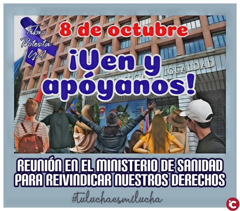La directiva de Fibro Protesta Ya ( Harmonie Botella, Lidia Lorenzo, Maria José Rodriguez, M. Dolores Moraga Pérez y Jacinto Plano) tiene por fin cita en el Ministerio de sanidad los 8 y 9 de octubre en el Congreso para exponer la situación catastrófica en la cual se encuentran los pacientes de enfermedades autoinmunes en España.