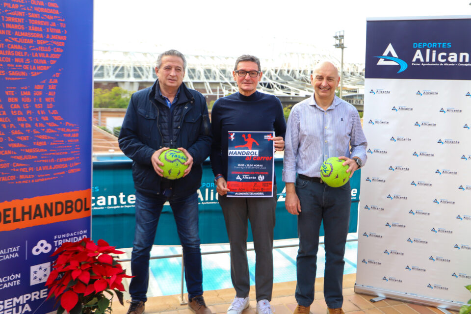 Al acto de presentación del Handbol al Carrer en Alicante han acudido el concejal de deportes, José Luis Berenguer; el presidente de la Fundación Balonmano Agustinos Alicante, Israel González: y el vicepresidente de la Federación de Balonmano de la Comunitat Valenciana, Manuel Javaloyes.