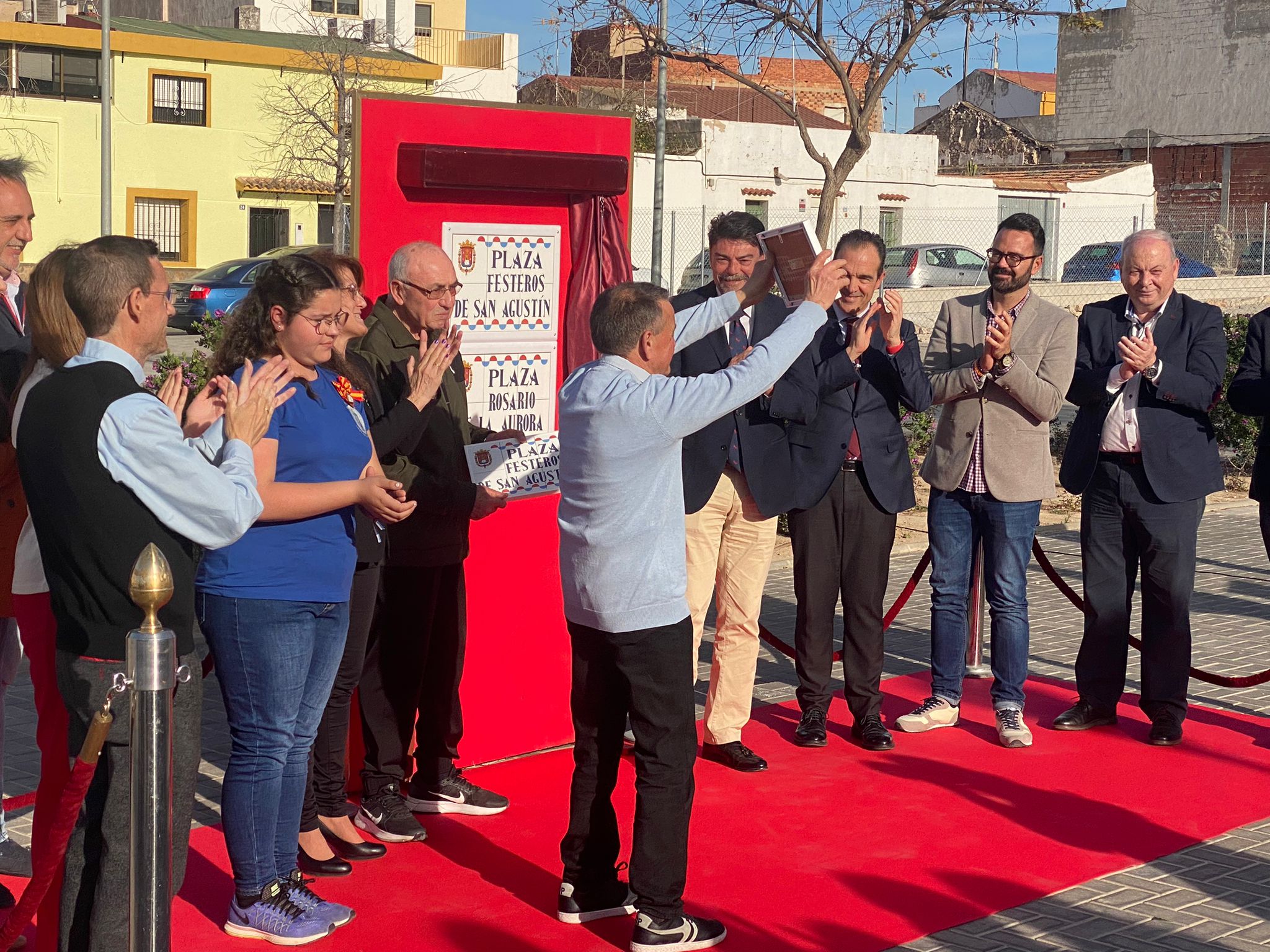 La petición para dar nombres a ambas plazas, avalada por la Concejalía de Estadística, partió de la Asociación de Fiestas del Barrio de San Agustín, y de la Asociación de Vecinos “La Prosperidad”. La inauguración de ambas plazas estaba prevista para el pasado viernes, 10 de marzo, pero las fuertes rachas de viento lo impidieron.