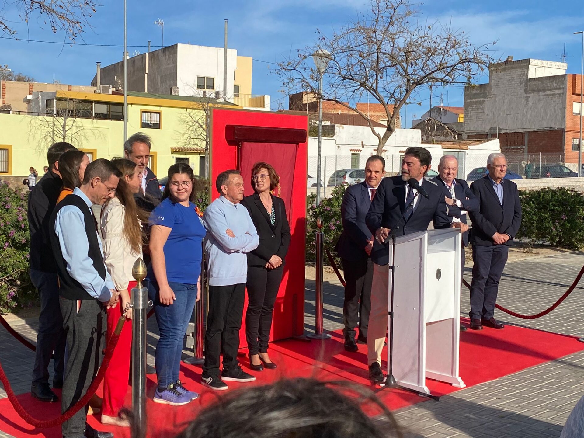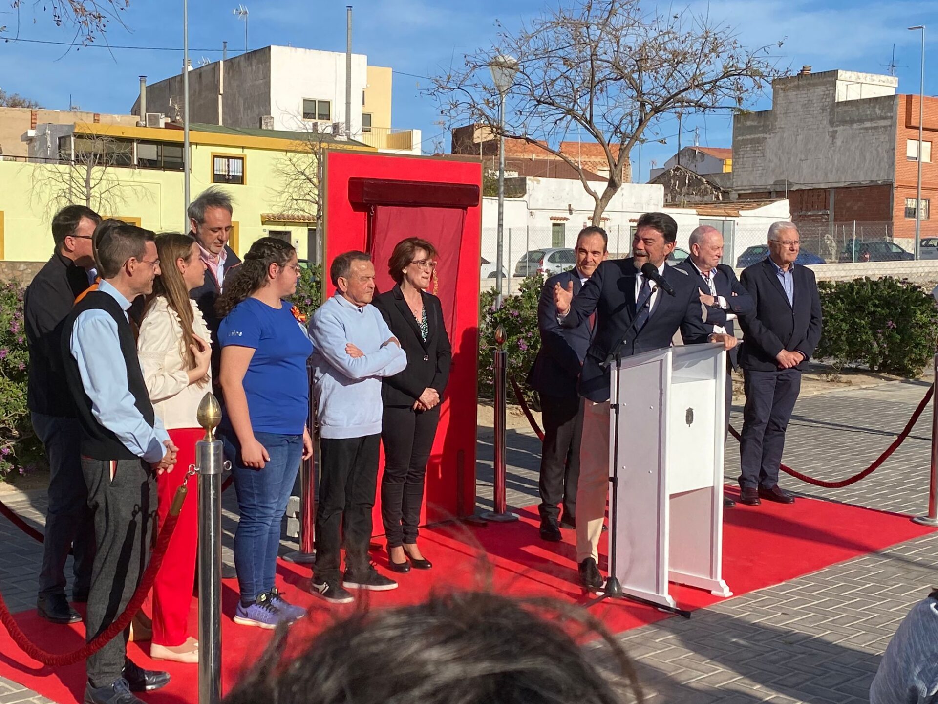 Alicante, 14 de marzo de 2023.- El alcalde Luis Barcala ha subrayado este martes la “larga tradición festera del barrio de San Agustín, que se remonta a más de setenta y cinco años” al inaugurar las plazas “Festers de San Agustín” y del “Rosario de la Aurora”. El primer edil ha estado acompañado por los concejales de Estadística, Antonio Peral; Fiestas, Manuel Jiménez; Urbanismo, Adrián Santos Pérez, e integrantes de la Corporación Municipal. La plaza “Festers de San Agustín” discurre paralela a la calle “Pitu” Perramón, inaugurada en 2018. Entre sus dotaciones cuenta con varias pistas para jugar a la petanca. La del “Rosario de la Aurora” está situada a escasos metros de la primera y es de dimensiones menores al estar localizada entre uno de los grupos de casas bajas que caracterizan a este barrio.