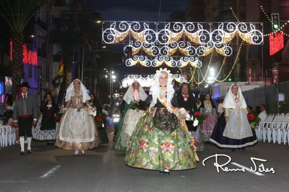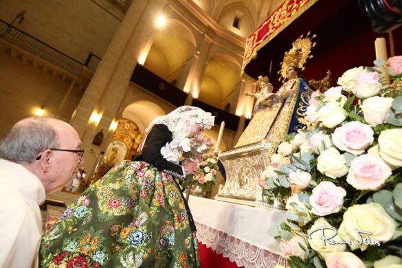 La ofrenda de flores de Alicante es la más antigua de España. Sus orígenes se remontan al año 1941, anterior a otras que también se celebran nuestro país como la de la Virgen del Pilar en Zaragoza (de 1958) y la de la Virgen de los Desamparados en Valencia (de 1945). La representación de cada distrito fogueril llevan adornos florales a la patrona de ciudad. Debido a la gran cantidad de ramos que se entregan, algo más de 10.000, el acto se divide en dos días.