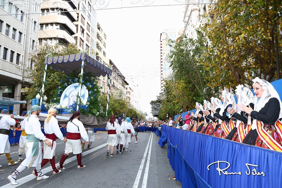 La ofrenda de flores de Alicante es la más antigua de España. Sus orígenes se remontan al año 1941, anterior a otras que también se celebran nuestro país como la de la Virgen del Pilar en Zaragoza (de 1958) y la de la Virgen de los Desamparados en Valencia (de 1945). La representación de cada distrito fogueril llevan adornos florales a la patrona de ciudad. Debido a la gran cantidad de ramos que se entregan, algo más de 10.000, el acto se divide en dos días.
