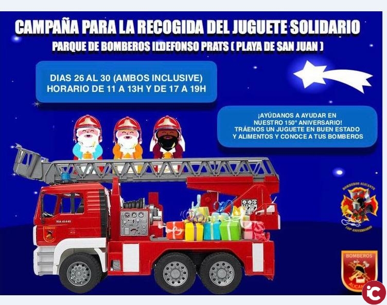 La Jornada Solidaria promovida por la Agrupación Deportiva y Cultura del Servicio de Prevención y Extinción de Incendios del Ayuntamiento de Alicante se pone en marcha en una nueva edición para colaborar con varios centros de acogida, Cáritas, las Parroquias María Auxiliadora, San Agustín, El Salvador, El Altet, Oswaldo y los colegios de Nuestra Señora del Carmen-Casalarga y Emilio Valera, y las Asociaciones Amaos, Benacantil, Lucetum, Nazaret, Oblatas, Recepción, Adolatrices, Gaia Tramuntana, Mensajeros de la Paz, Els Stels donde se donarán para los niños/as todos los juguetes nuevos o en buen estado así como los alimentos.