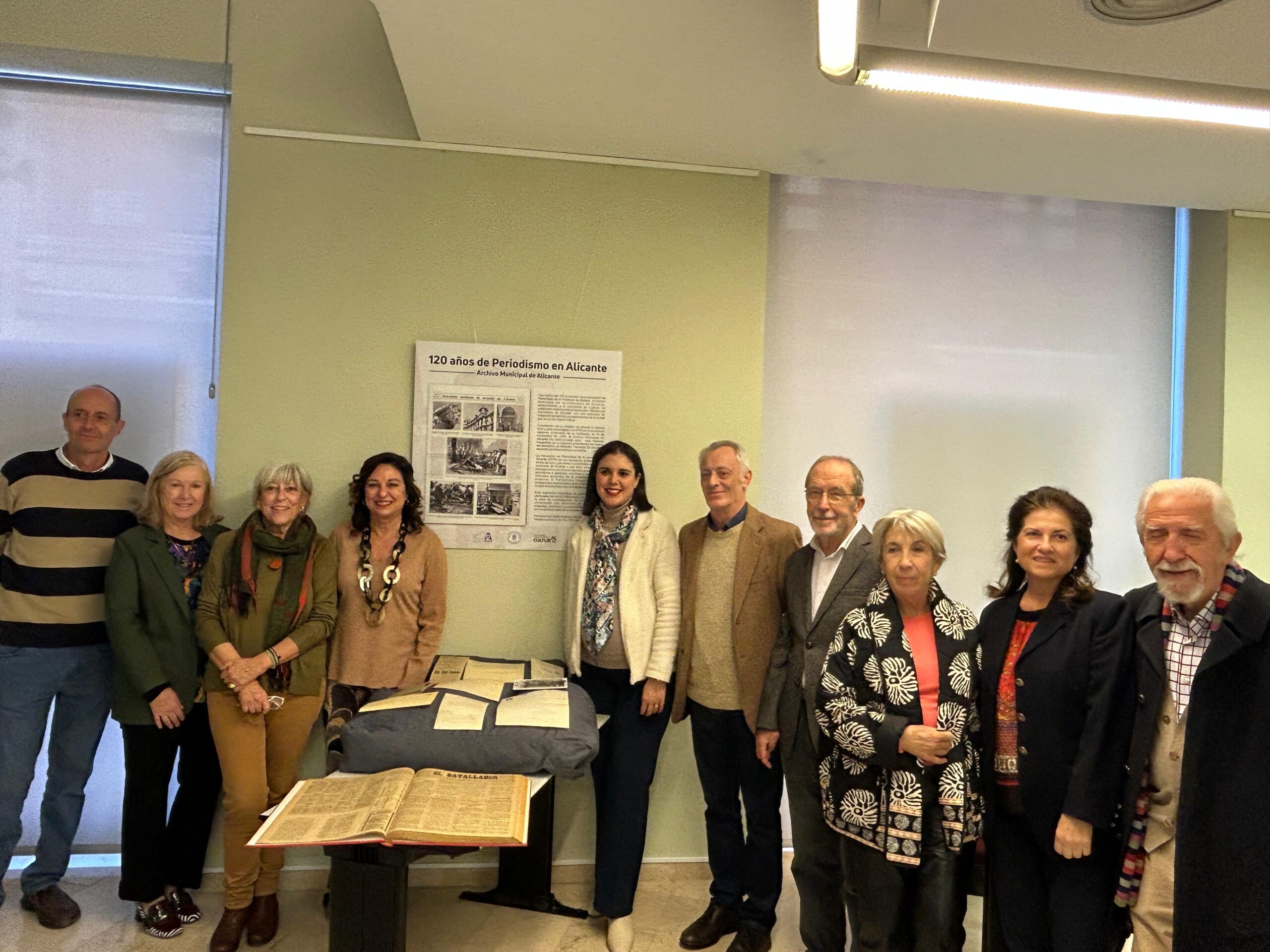 La Asociación de Periodistas de la Provincia de Alicante (APPA) ha cerrado este lunes sus actividades por el 120 aniversario en el Archivo Municipal, lugar donde comenzaron con una exposición el pasado mes de enero. La concejala de Cultura, Nayma Beldjilali, la presidenta de la APPA, Rosalía Mayor, y miembros de la junta directiva han recorrido junto con la directora del Archivo Municipal, Susana Llorens, una pequeña muestra dedicada a la Prensa local con diversos documentos, fotografías y ejemplares de periódicos antiguos encuadernados.