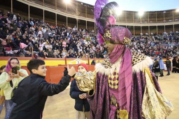 El segundo ‘baño de multitudes’ lo recibieron los Magos de Oriente en el coso de la Plaza de España por parte de los 6.000 espectadores que, después de que recogieran su invitación en la Casa de la Festa ‘Manuel Ricarte’ en los últimos días, han presenciado el espectáculo infantil antes de la llegada de los Reyes. Melchor, Gaspar y Baltasar se han dirigido a los más pequeños recomendándoles buenos consejos para la gran noche de la ilusión.