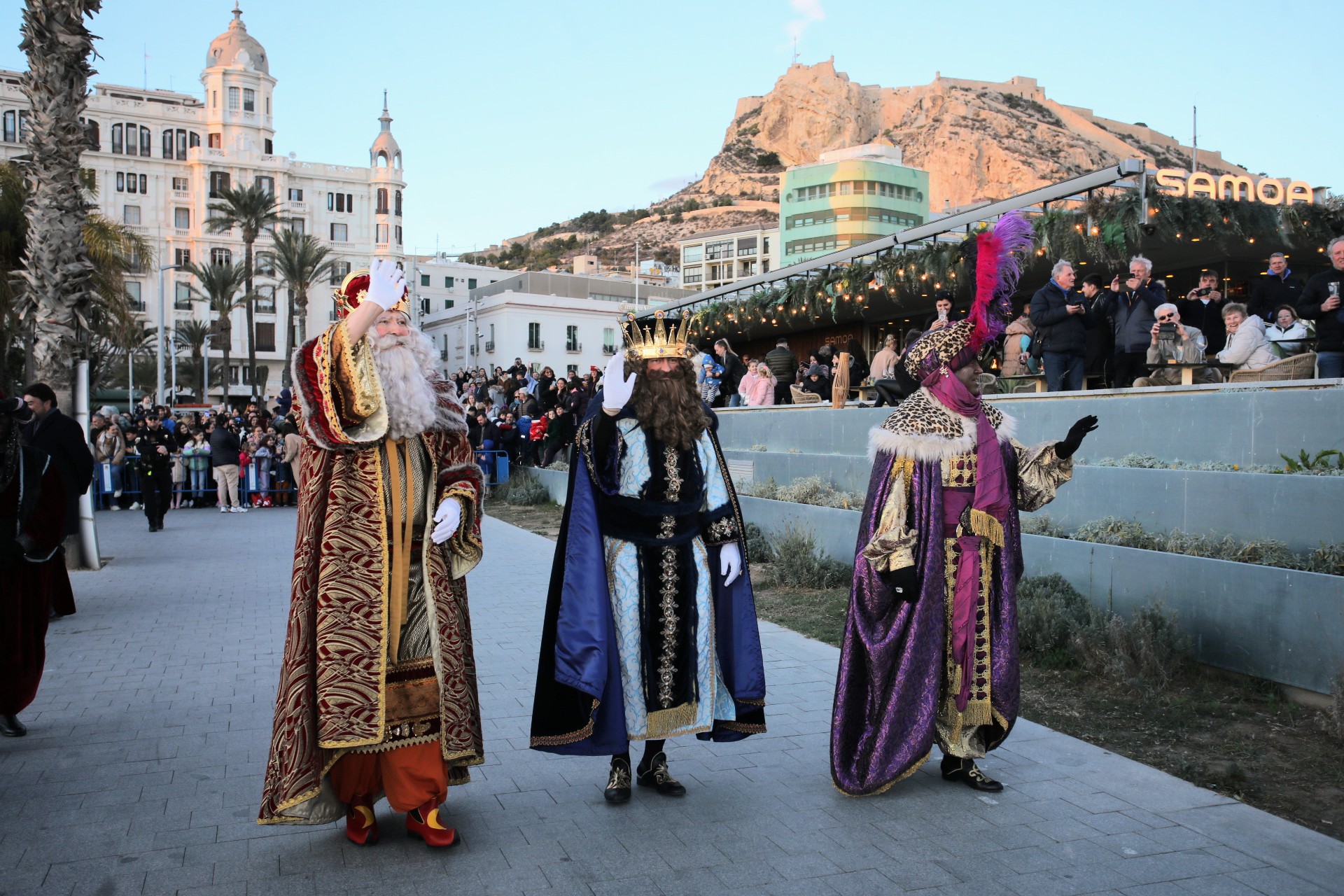 La gran expectación suscitada por la cabalgata ha supuesto el colofón a unas Navidades de récord en Alicante, con más de 5.000 participantes en la ‘San Silvestre Solidaria’, 14.000 asistentes a la Nochevieja Infantil y 21.000 de la Nochevieja adulta, más de 30.000 visitantes del Campamento Real de la Plaza de Gabriel Miró, cerca de 40.000 visitas a la Casa de San Nicolás y casi 2.000 personas presentes este jueves en la Plaza de Gabriel Miró para escuchar los parlamentos de las Carteras Reales y la posterior visita al Campamento.