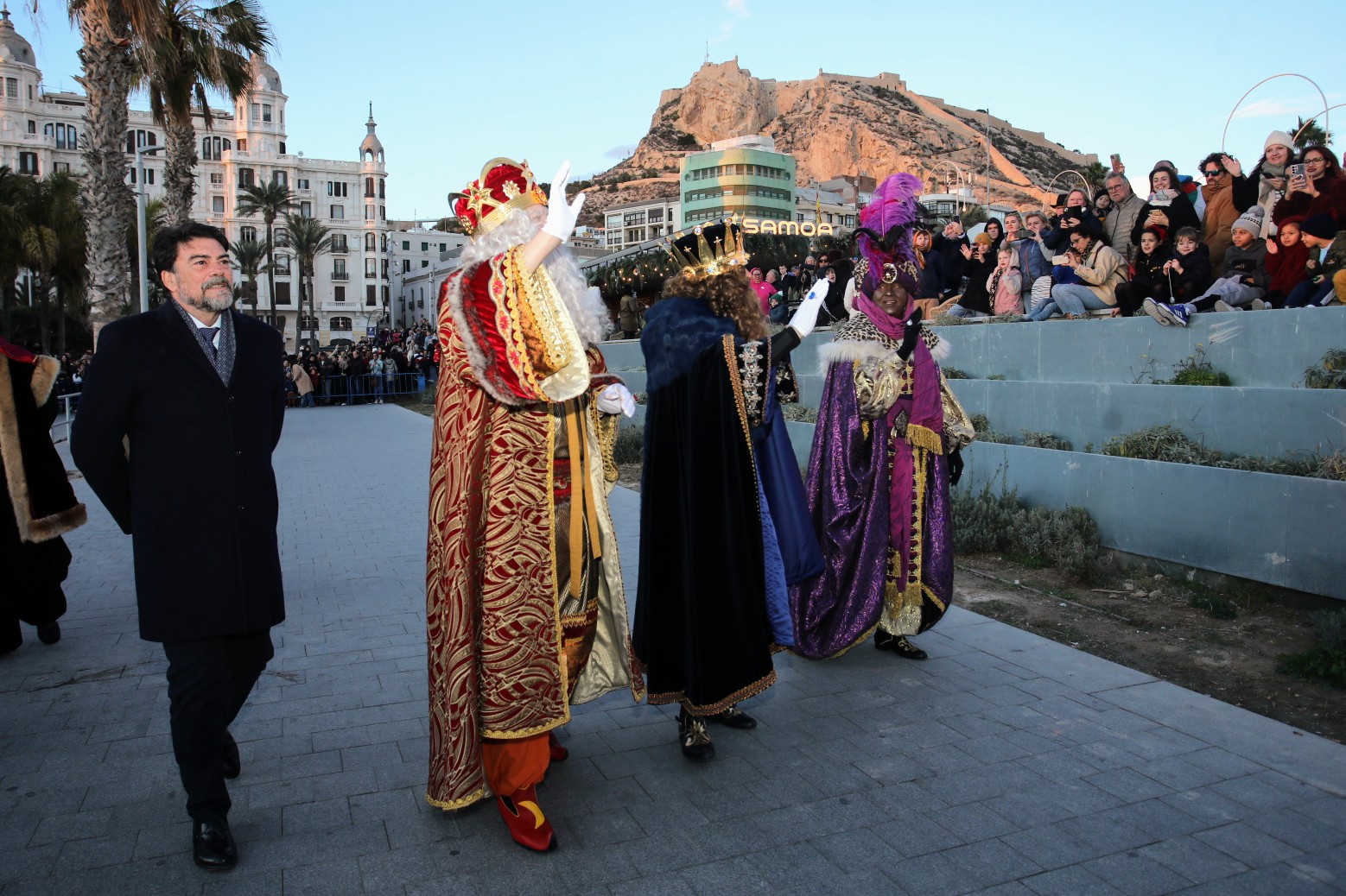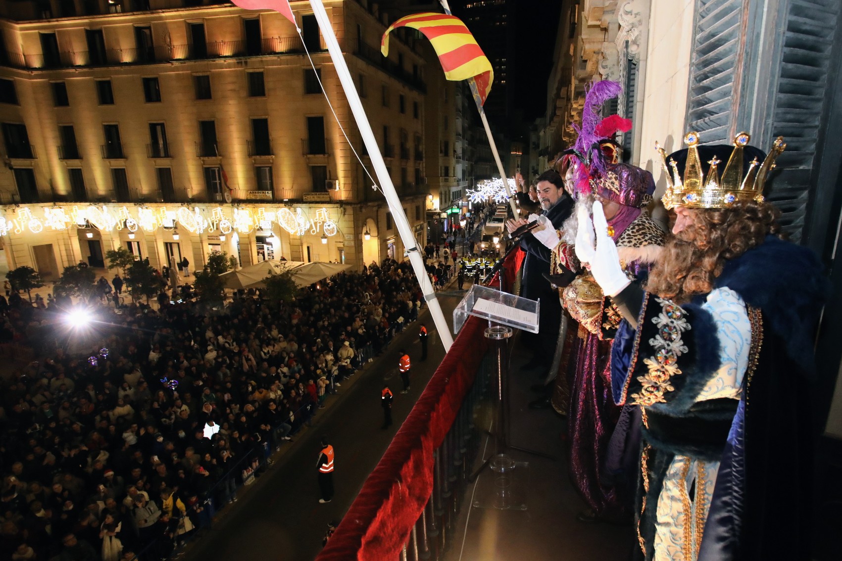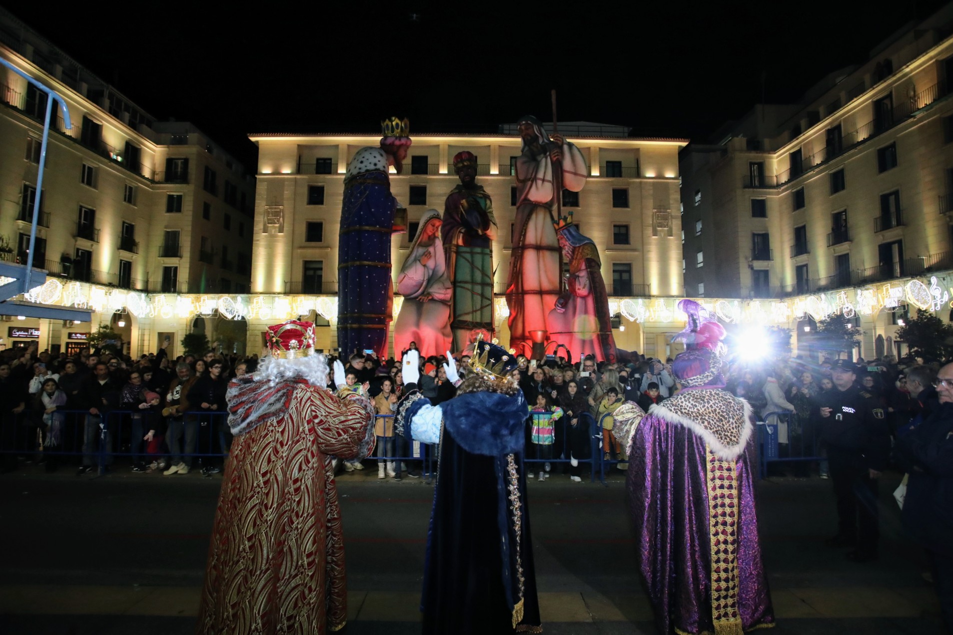 Sobre las 21.15 horas, Melchor, Gaspar y Baltasar han sido recibidos por Barcala, el vicealcalde Manuel Villar, la concejal de Fiestas, Cristina Cutanda, e integrantes de la Corporación Municipal, a la conclusión de la Cabalgata en la Plaza del Ayuntamiento. Desde este punto, y en medio de los vítores y exclamaciones de los pequeños, salieron al balcón principal para leer sus respectivos discursos, teniendo como referente el Belén Monumental, otra de las atracciones navideñas más visitadas en estas fechas y que hace bueno el lema promocional ‘Alicante, tu mejor Navidad’.