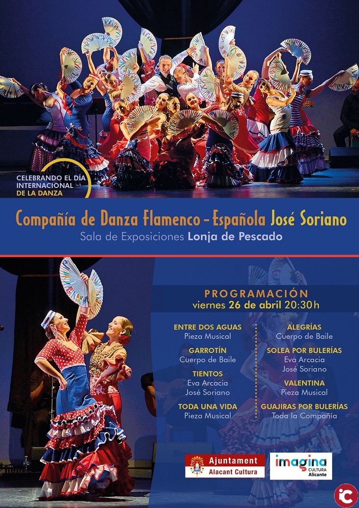 Alicante, 11 de abril de 2019. La Concejalía de Cultura, con motivo del Día Mundial de la Danza, ha programado la celebración de un espectáculo de Danza- Flamenco, el próximo día 26 de abril, en el marco incomparable de la Sala de Exposiciones Lonja del Pescado, a las 20:30 horas.