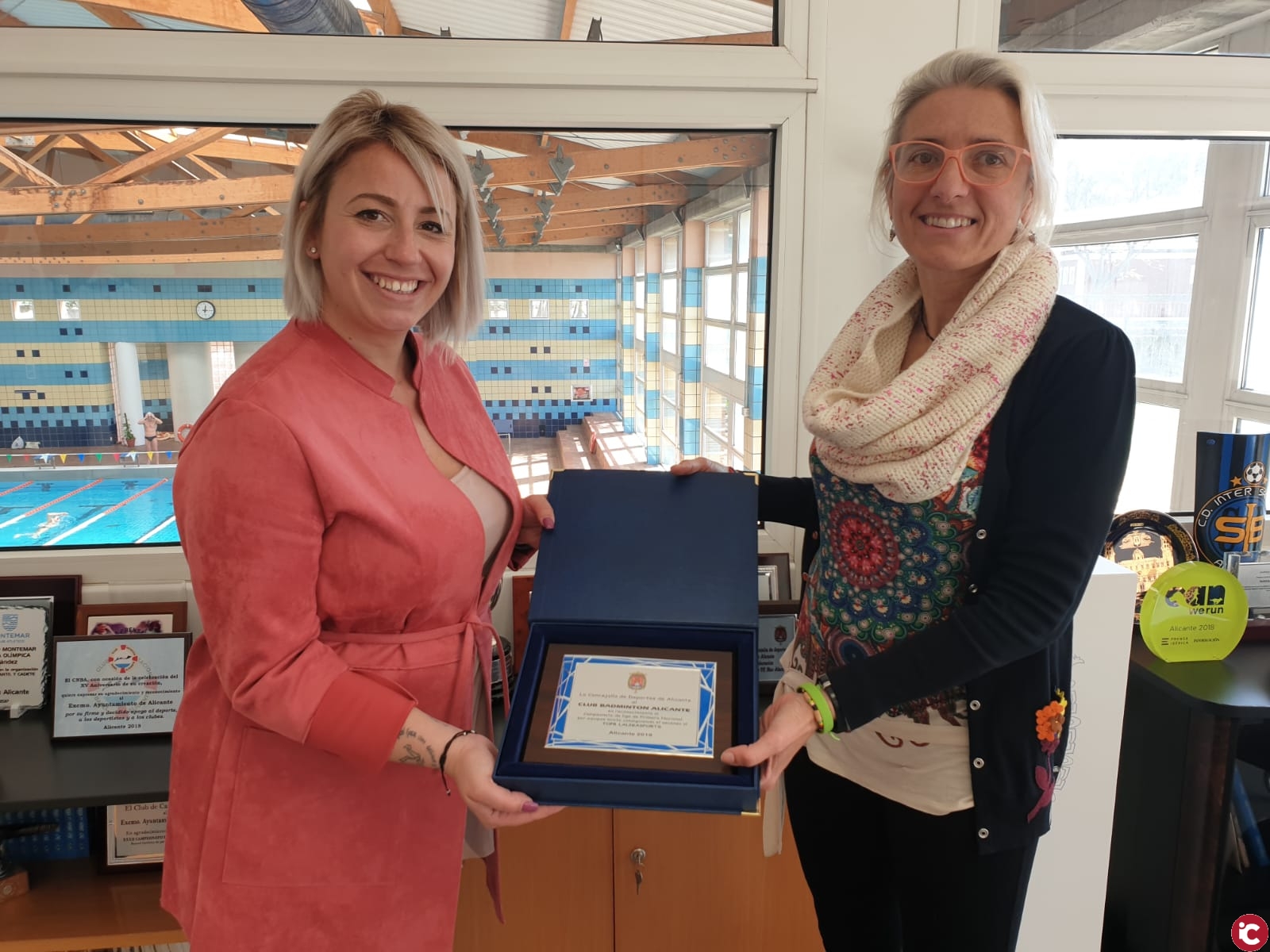 La edil ha entregado a la representante del club una placa con la lectura La Concejalía de Deportes de Alicante al Club Badminton Alicante en reconocimien to al Campeonato de Liga de Primera Nacional por equipos mixto consiguiendo el ascenso al TOP8 LALIGASPORTS. Alicante 2019.