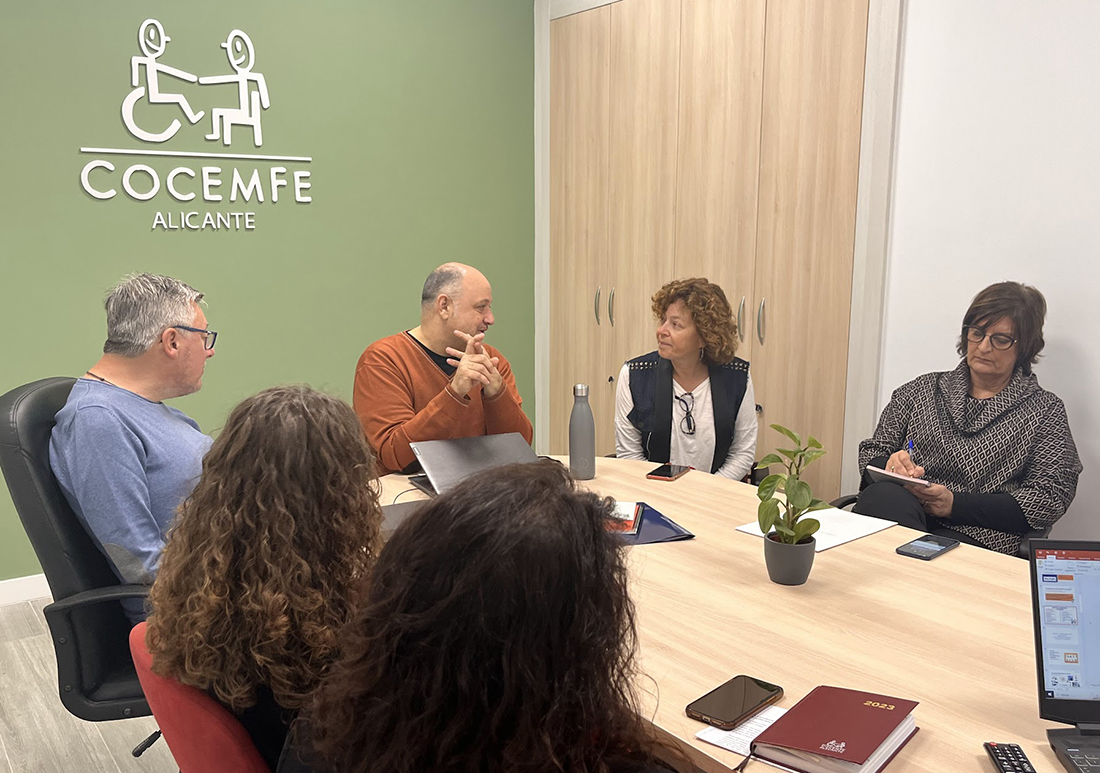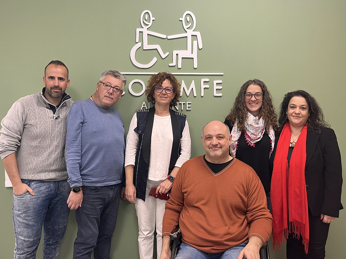 La consellera de Innovación, Universidades, Ciencia y Sociedad Digital, Josefina Bueno, ha visitado la sede de COCEMFE Alicante, la Federación de Asociaciones de Personas con Discapacidad Física y Orgánica de la provincia de Alicante, manteniendo un encuentro con Antonio Ruescas, presidente de la entidad, Cristina Valdés, coordinadora, Fernando Egido y Cristina Esclapés, tesorero y vocal de la misma.