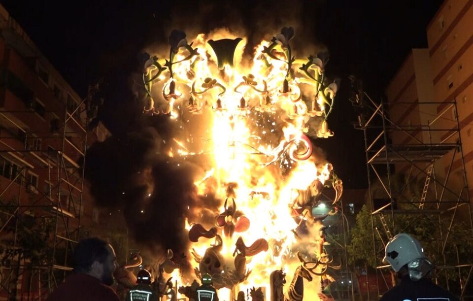 El broche de oro de las Hogueras de San Juan de Alicante 2022 llega en la noche del día 24 de junio con la Cremà. Se vivieron momentos muy emocionantes, llenos de alegría y diversión cuando, tras la espectacular palmera de fuegos artificiales disparada desde el Monte Benacantil, comenzó la Cremà de las hogueras de las distintas comisiones.
