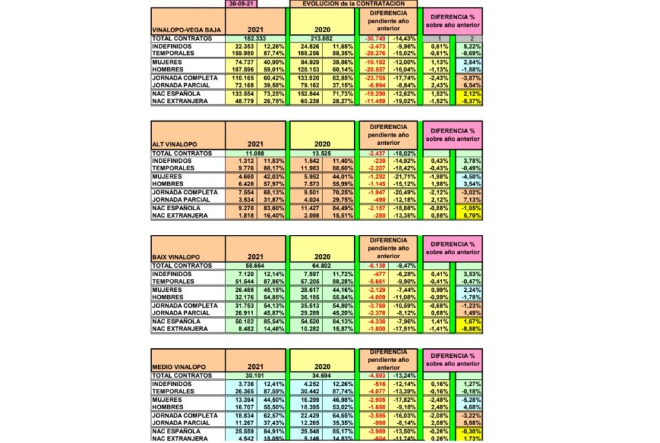 Baix Vinalopó…….……….9.039 contratos y se han realizado 3.744 mas.