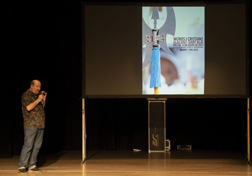 A continuación, el diseñador y festero Luis Amat Vidal, presentó el libro de Fiestas 2023, un año más, reflejo de lo que fue el ejercicio anterior y lo que será el que ahora comienza, con una completa muestra fotográfica, un diseño elegante y limpio, y una cuidada tipografía. A destacar la sección literaria, con artículos de investigación firmados, entre otros, por el doctor en historia Juan Antonio Barrio, y el presidente