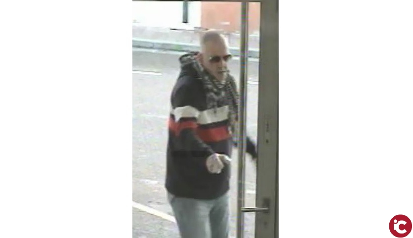 El día del atraco vestía jersey de color oscuro con una franja horizontal de color rojo y otra blanca, pantalón vaquero azul claro, pañuelo tipo palestino y gafas de sol oscuras.