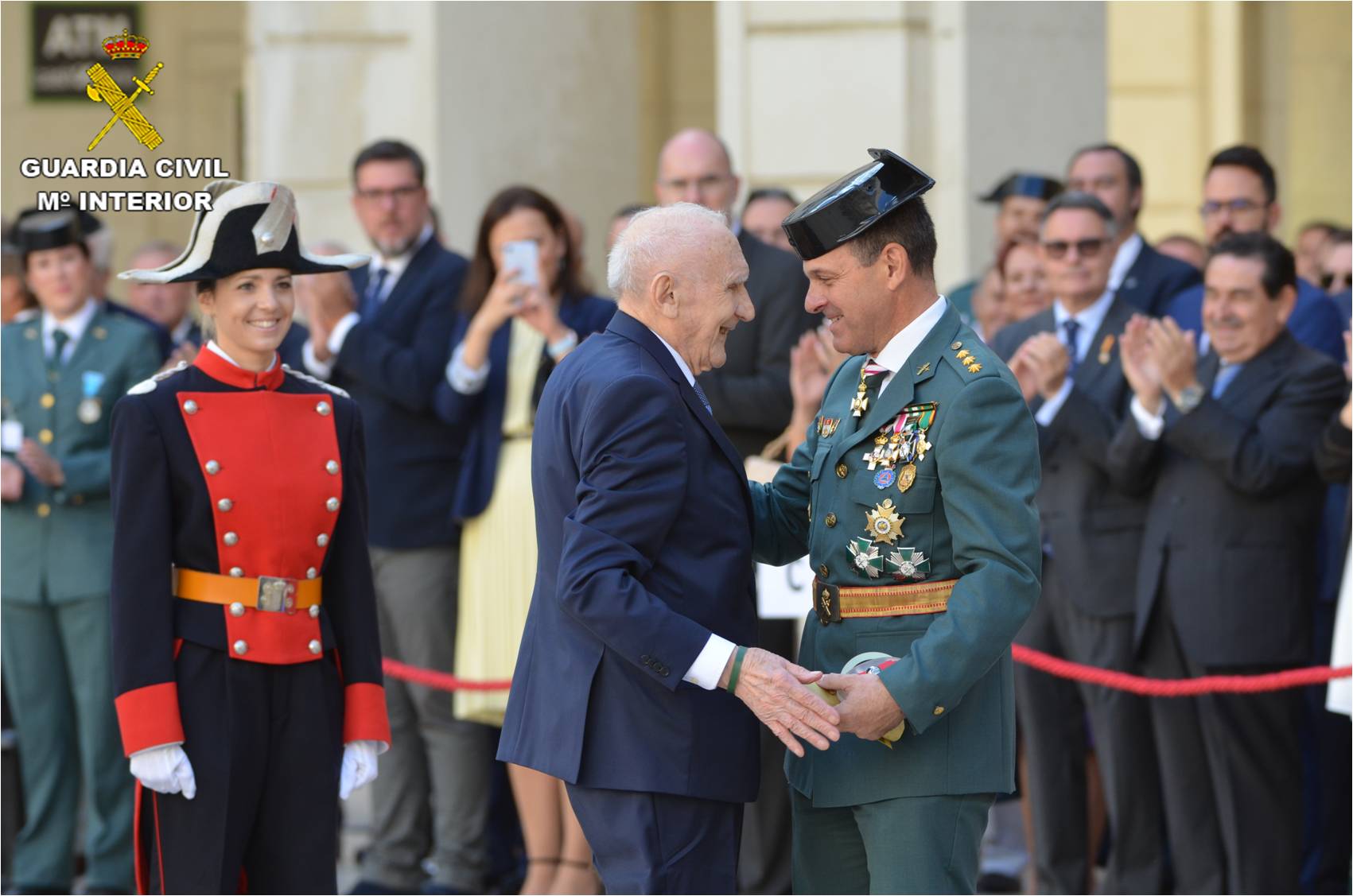 El momento más emotivo del Acto fue el reconocimiento otorgado por el Coronel Jefe al Teniente retirado Juan Guilló Gómez, el Guardia Civil más longevo de la provincia, que cumplirá 100 años el póximo 11 de diciembre.
