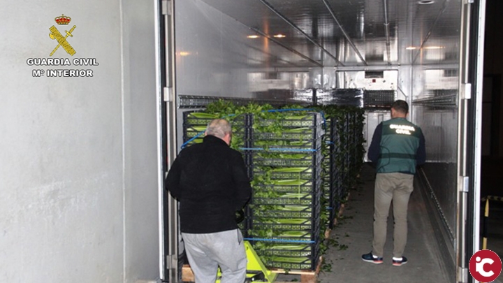 El pasado día 27 de febrero, los agentes investigadores presenciaron la llegada de un camión de gran tonelaje a la citada nave y cómo unos hombres comenzaron a descargar la mercancía que transportaba, en concreto palets conteniendo cajas de verdura, que eran introducidos en el local.