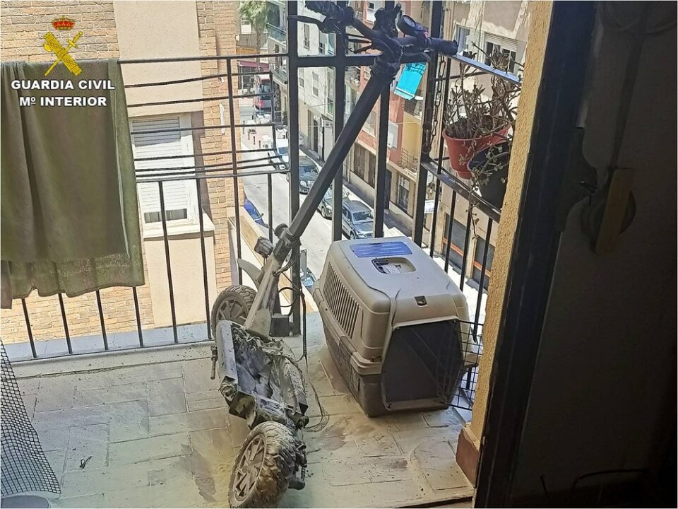 La Guardia Civil del Subsector de Tráfico de Alicante ha auxiliado a los vecinos de un inmueble y ha sofocado un conato de incendio en una vivienda que ya había calcinado una de las habitaciones y provocado heridas a su propietario. El origen del fuego fue la explosión de la batería de un patinete eléctrico.