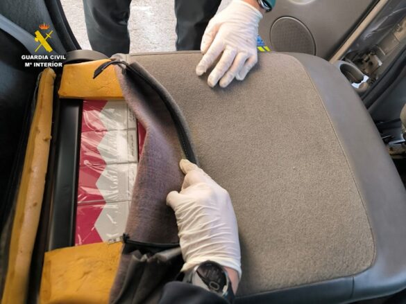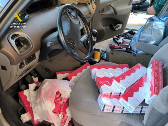 De todo el tabaco intervenido, los agentes realizaron el hallazgo más numeroso, 1.075 cajetillas, tras observar ciertos indicios que les hicieron sospechar del ocupante de un vehículo, de 44 años. Por este motivo, los agentes solicitaron el apoyo del servicio Cinológico de la Comandancia de Alicante, acudiendo el agente canino “Aisa” y su guía, quienes descubrieron el emplazamiento del tabaco, realizando tras ello la apertura de los habitáculos para su extracción.