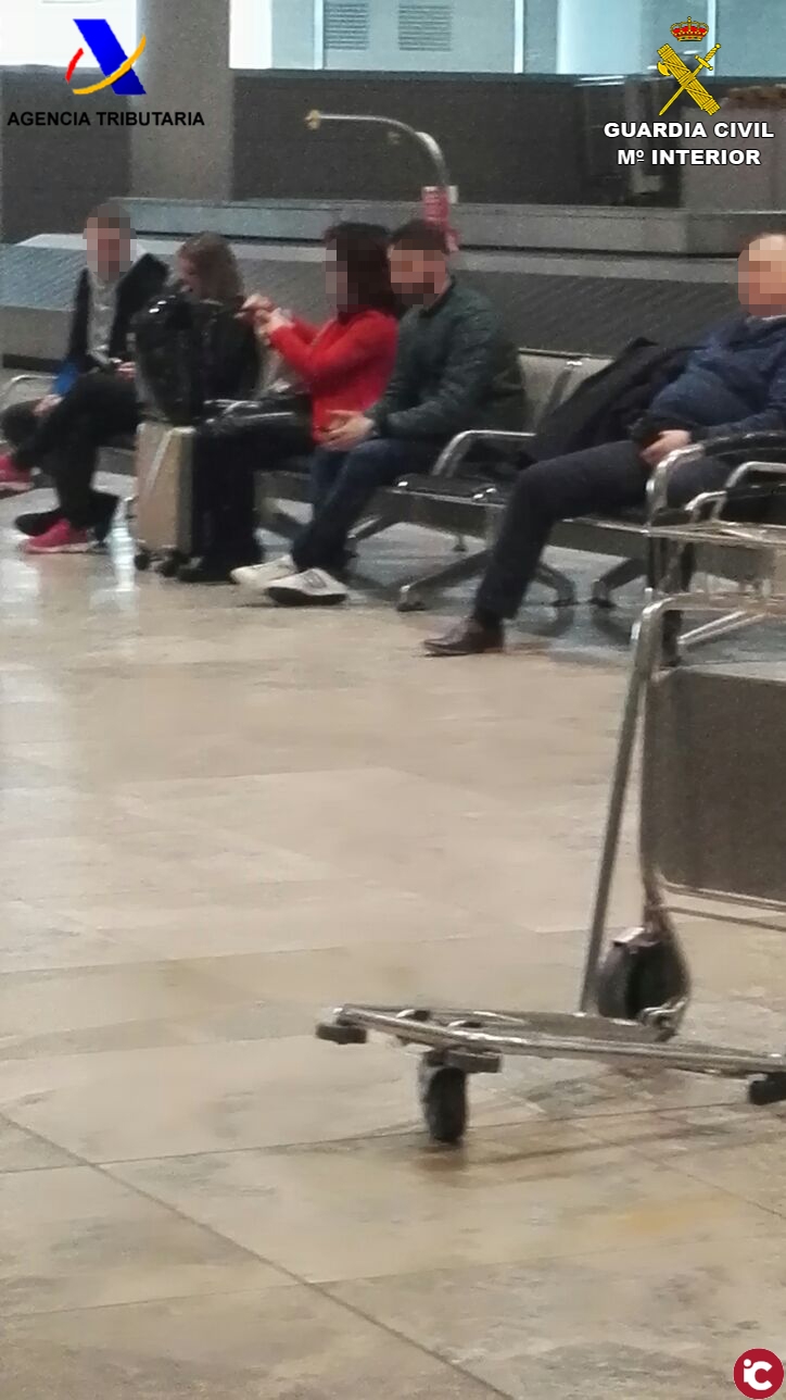 Una vez que terminaron de recoger sus respectivos equipajes, los agentes de la Guardia Civil solicitaron a estas personas que abrieran su equipaje para comprobar lo que había en su interior.