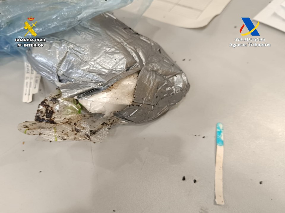 El día 4 de septiembre, agentes de la Guardia Civil de Alicante destinados en el Destacamento de Fiscal y Fronteras del Aeropuerto de Alicante – Elche Miguel Hernandez, bajo la dependencia funcional del Administrador de la Aduana del Aeropuerto, al realizar el análisis de riesgo de la paquetería que se recibe en un almacén de depósito temporal bajo control aduanero, por medio de las imágenes de Rayos X, detectaron que el contenido de uno de los envíos procedente de Colombia no coincidía con el contenido declarado.