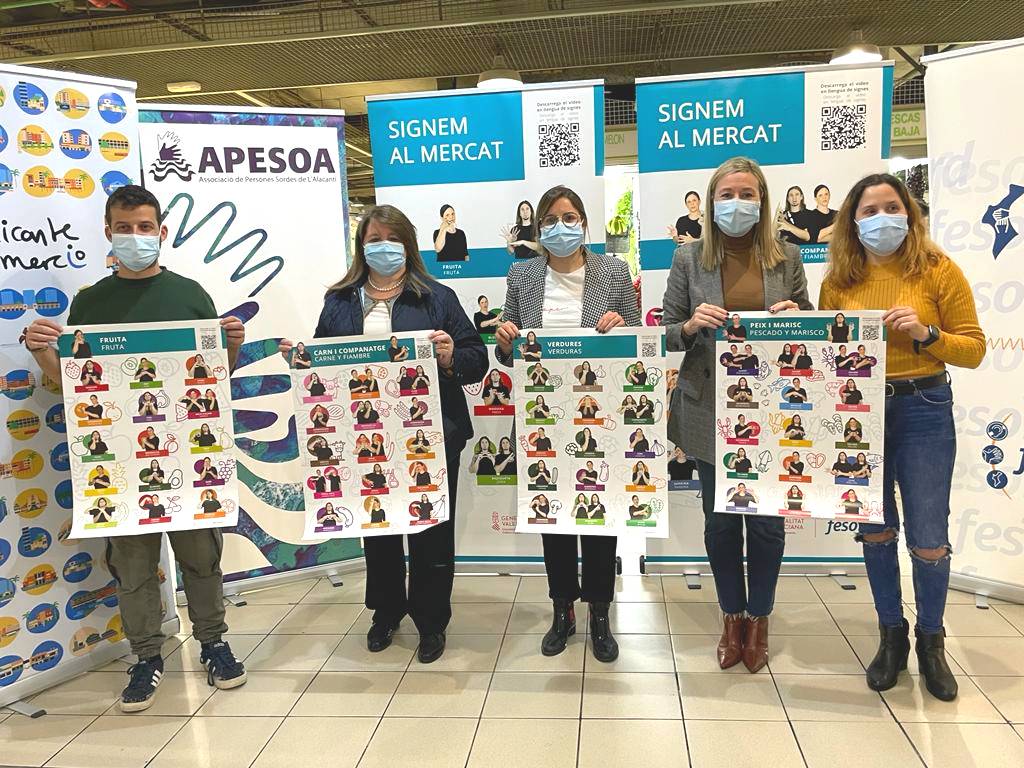 Por su parte el presidente de la Asociación de Comerciantes en Mercados Municipales de Alicante, Paco Alemañ, agradeció la iniciativa en el Centenario del Mercado Central señalando que “esta campaña es muy necesaria para visibilizar con carteles y lograr acercar la lengua de signos a los comerciantes que siempre hemos sido unos agentes importantes de la cohesión social y la integración”.