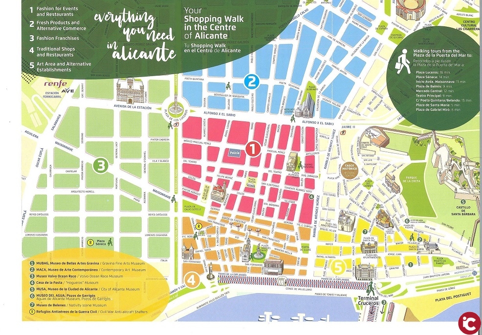 Numerosos comercios y establecimientos de restauración darán la bienvenida a estos miles de viajeros con el distintivo “Shopping walk. Alicante. Best Price” pegado en sus escaparates.