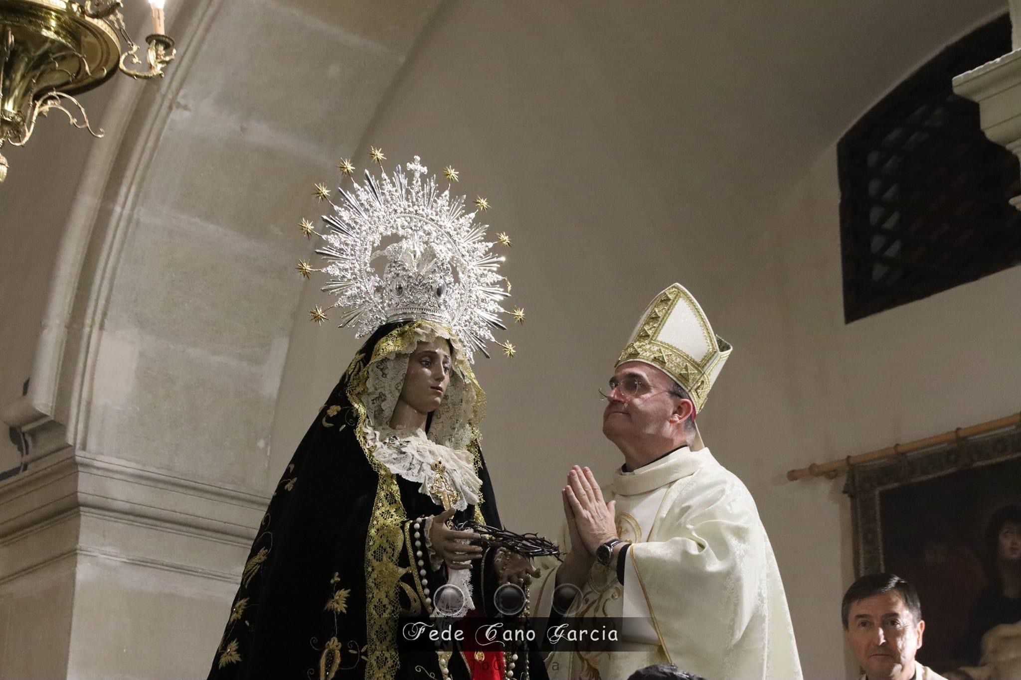 La ceremonia del sábado estuvo presidida por el obispo, José Ignacio Munilla, y como padrinos de la coronación el presidente de la Diputación Provincial de Alicante Toni Pérez y la Hermana de la Cofradía Lola Peña, los feligreses e invitados que llenaron el templo fueron testigos, de esta página en la historia de la Semana Santa de Alicante y de este monasterio .