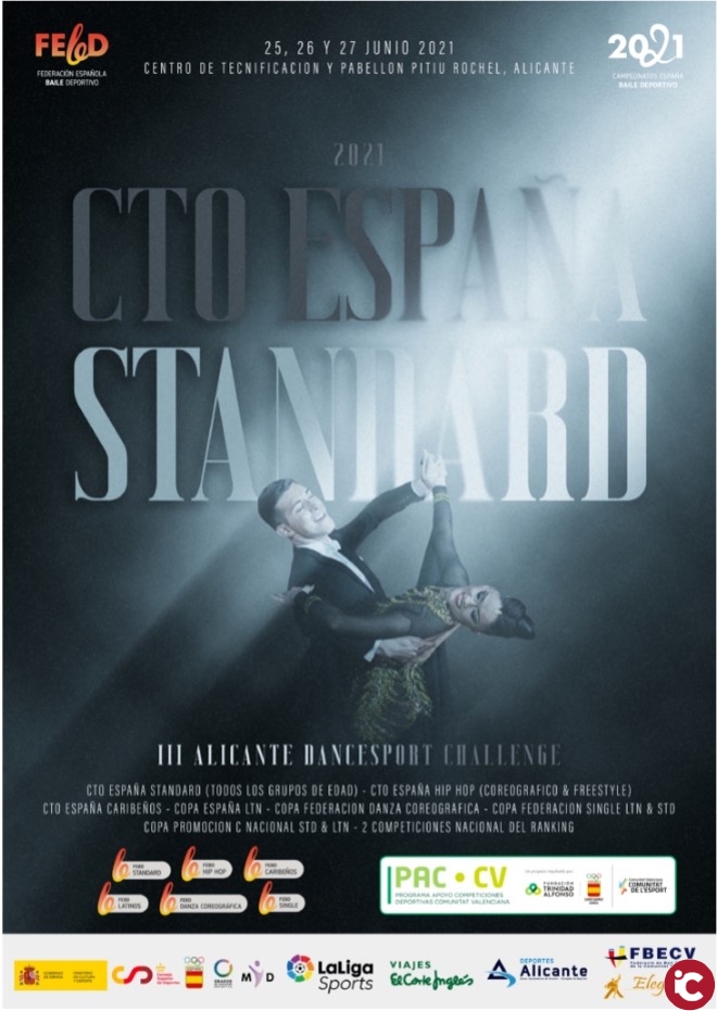 El Campeonato de España Standard, englobado en el calendario de la Federación Española de Baile Deportivo, llegará a la ciudad de Alicante este viernes. La competición tendrá lugar entre el Pabellón Pedro Ferrándiz y el Pitiu Rochel los días 25, 26 y 27 de junio teniendo así actividad durante los tres días.
