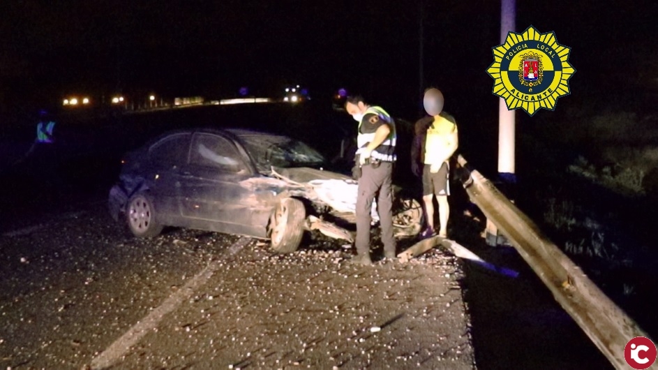Según fuentes policiales sobre la una de esta madrugada tres unidades de Policía Local de Alicante, pertenecientes al Servicio Nocturno, intervenían en la autopista A-70, como consecuencia del accidente de tráfico de un vehículo, que circulaba sentido Valencia y ha perdido el control impactando y quedando destrozado el coche y ocupando un carril de circulación.