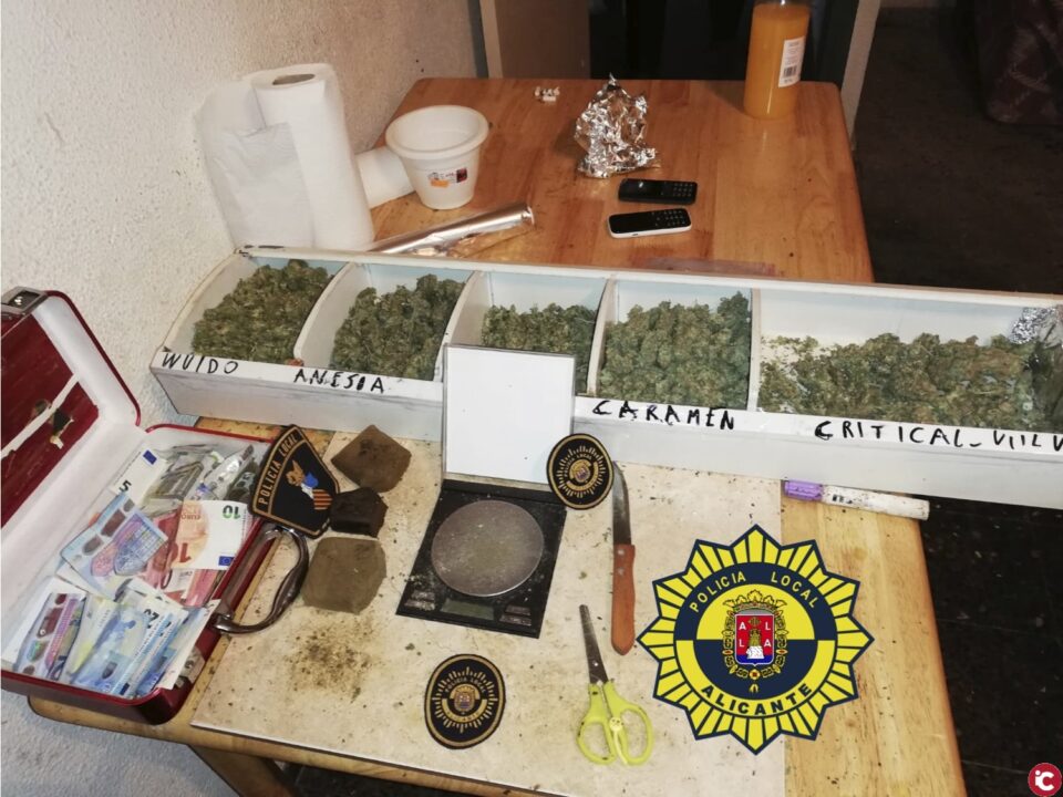 La Policía Local de Alicante desmantela y clausura un ‘narcopiso’ con 1,6 kilos de marihuana y hachís en la zona norte