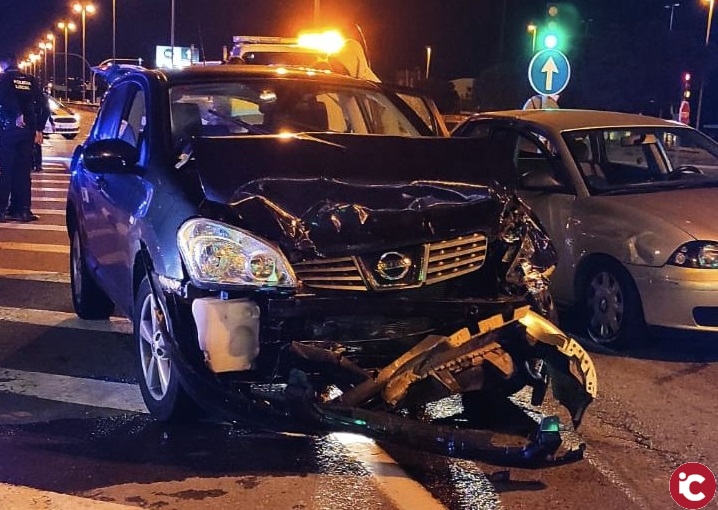 Según fuentes policiales los hechos tuvieron lugar a las 22.40 horas, por causas que investiga la unidad de Atestados del Servicio Nocturno de la Policía Local, cuando dos vehículos que circulaban sentido Alicante, impactaron por alcance uno contra la parte trasera del otro, y como consecuencia del choque, resultó herida una mujer que viajaba de acompañante en el vehículo impactado.