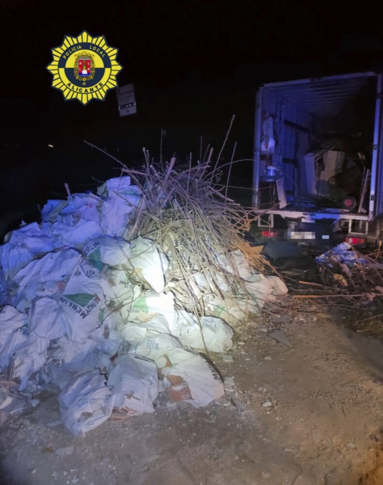 La Policía Local de Alicante frustró este jueves un vertido ilegal de escombros en la zona de Juan XXIII, en el camino conocido como Las Parras. Los agentes de la Unidad de Partidas Rurales localizaron pasadas las ocho de la tarde a tres individuos depositando escombros y enseres en un lugar no autorizado, que habían transportado en camión, procediendo a su identificación y a cursar la correspondiente denuncia.