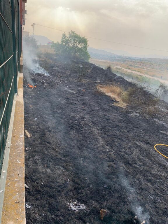 Dos dotaciones del SPEIS junto con cuatro patrullas de Policía Local se han desplazado para controlar el incendio. El fuego se ha producido antes de las 19,30 horas, cuando los servicios de emergencia han recibido un aviso a través de la sala operativa.