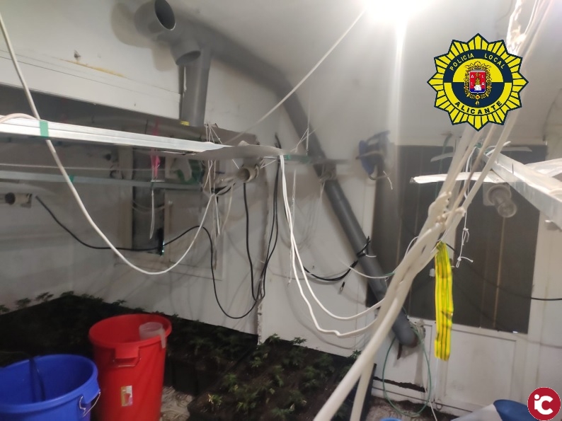 Los agentes de la Policía Local de Alicante procedieron a incautar la plantación, precintar y custodiar la vivienda hasta que se hizo cargo de la misma el Cuerpo de Policía Nacional.