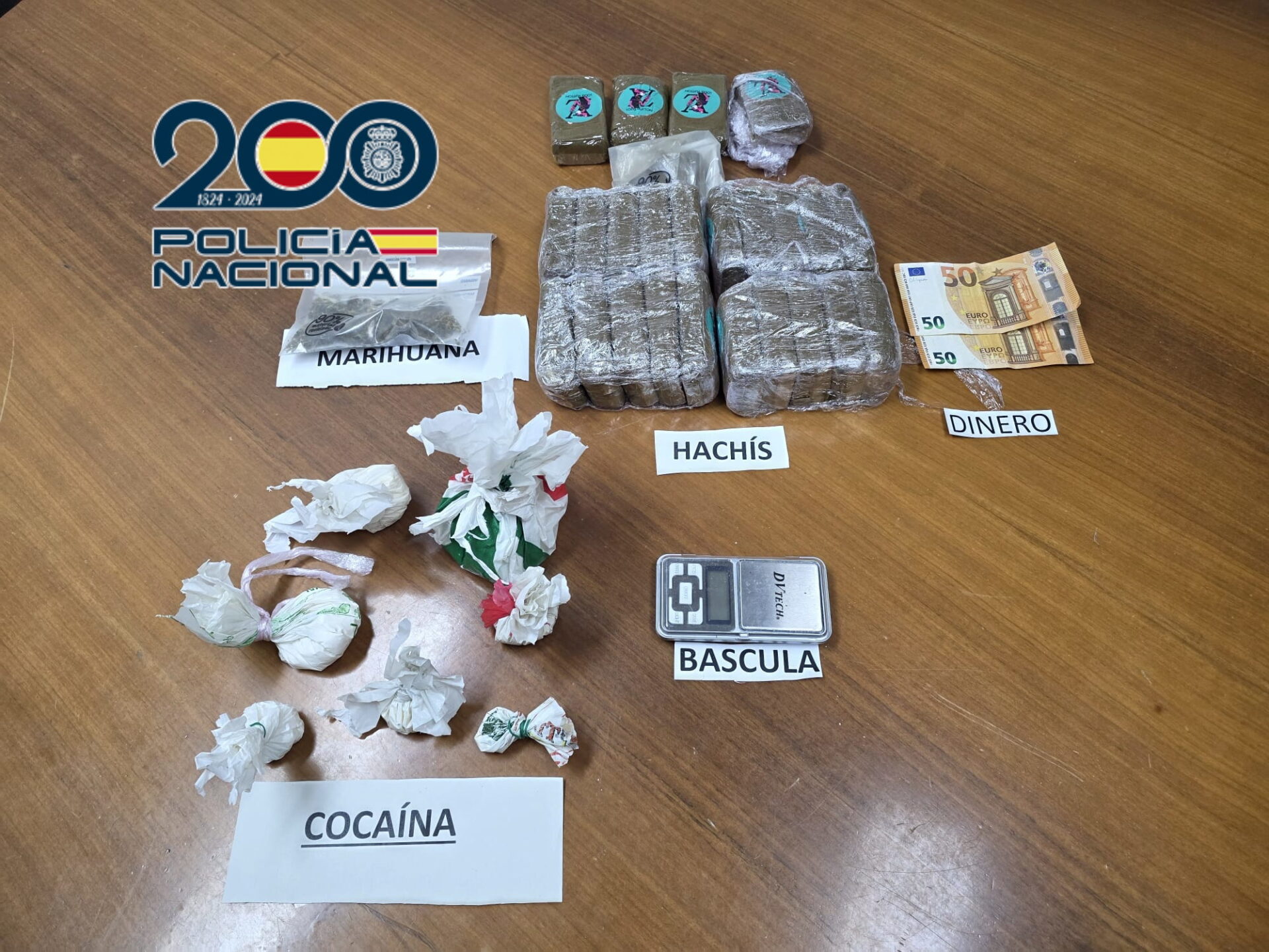 Una vez detenido, se realizó un registro en su domicilio, en el que los agentes intervinieron más de 250 gramos de cocaína, unos 2500 gramos de hachís y 12 gramos de marihuana.