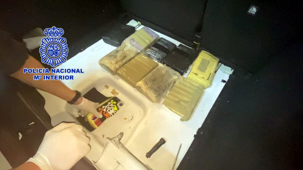 04-abril-2023.- Agentes de la Policía Nacional en la lucha contra el narcotráfico, han llevado a cabo en las localidades de Alicante y Elche un operativo en el que han resultado detenidas dos personas por tráfico de drogas y falsedad documental sobre quienes se decretó su ingreso en prisión. En la operación policial se incautaron 35 kilos de cocaína, 32.000 euros en efectivo y tres vehículos de alta gama que los detenidos utilizaban para transportar la droga oculta en huecos habilitados conocidos como «caletas».