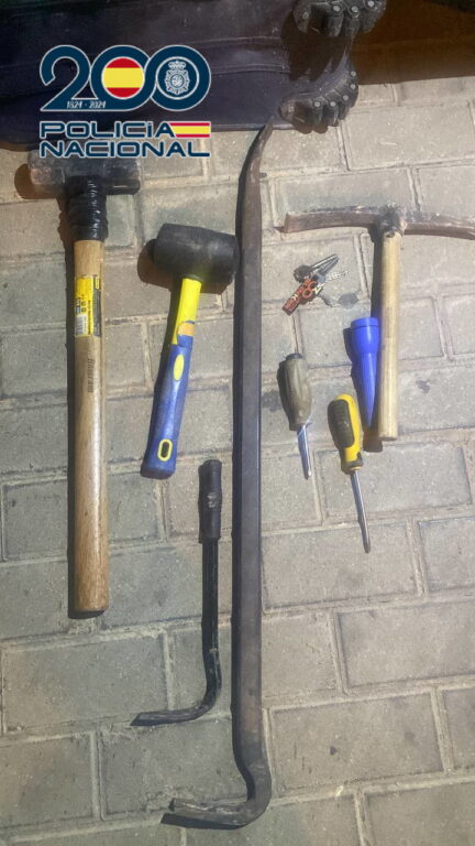 Se sabía que el autor utilizaba una maleta de grandes dimensiones, identificada previamente en una detención anterior. Esta coincidía plenamente con la utilizada en los cinco robos investigados, donde transportaba herramientas como mazas, cizallas, palanquetas y destornilladores, esenciales para realizar los butrones. Para su detención, se estableció un dispositivo específico de búsqueda.