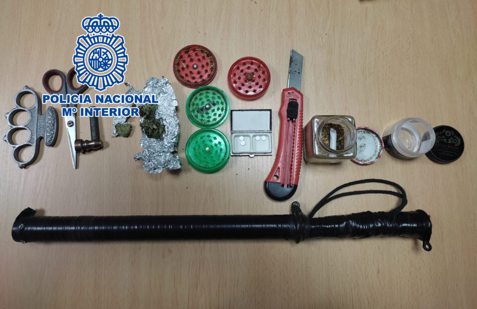 La intervención culminó con la detención de una persona por tráfico de drogas y por constarle una reclamación policial por un delito de amenazas graves. Además, los agentes realizaron varias actas de sanción al resto de ocupantes del vehículo por portar armas prohibidas, infracción grave en materia de seguridad ciudadana, e intervinieron diversos tipos de sustancias estupefacientes, marihuana y speed, fraccionadas en pequeños envoltorios, así como diversos útiles para la venta de dichas sustancias.