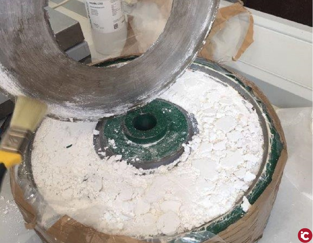 La pesa tuvo que ser trasladada a un taller privado, donde se utilizó un torno hidráulico para la extracción de la partida de cocaína de su interior.