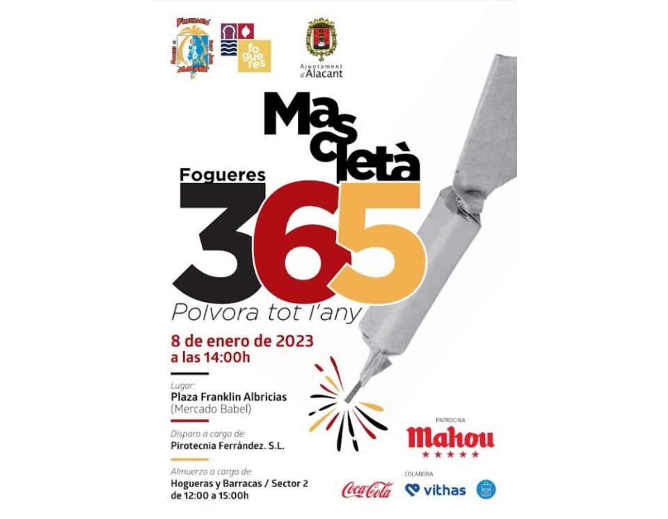 La Federació de les Fogueres de Sant Joan iniciará el próximo domingo, 8 de enero, ‘Pólvora tot l’any’. El proyecto de Fogueres 365, que promociona la fiesta durante todo el año alrededor de la ciudad, contará con el disparo de nueve mascletàs, el 8 de enero, el 5 de febrero, 5 de marzo, 23 de abril, 14 de mayo y 3,4,10 y 11 de junio.