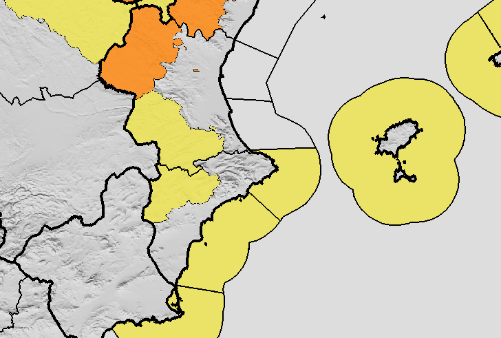 Zonas como Benidorm, La Vila Joiosa, El Campello, Santa Pola, Torrevieja y Dénia podrían registrar fuerte oleaje, por lo que se recomienda extremar la precaución en paseos marítimos y zonas portuarias.