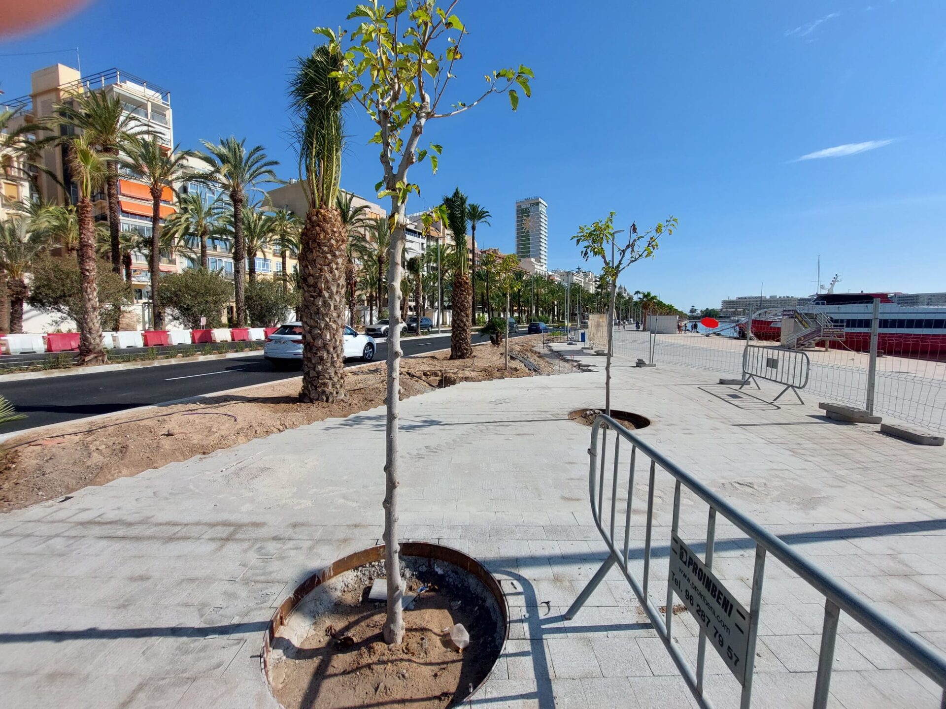 Las obras de transformación urbana puestas en marcha este verano por el Ayuntamiento de Alicante contemplan la plantación de más de 570 árboles nuevos. Las nuevas plantaciones dan prioridad a árboles tradicionales del mediterráneo español como son los platanus hispanica o las palmeras de palma ancha (Whashingtonia y Livingstonia) para aportar mayor sombraje, además de aportar colorido y originalidad con los jaboneros de China (Koelreutieria Paniculata).