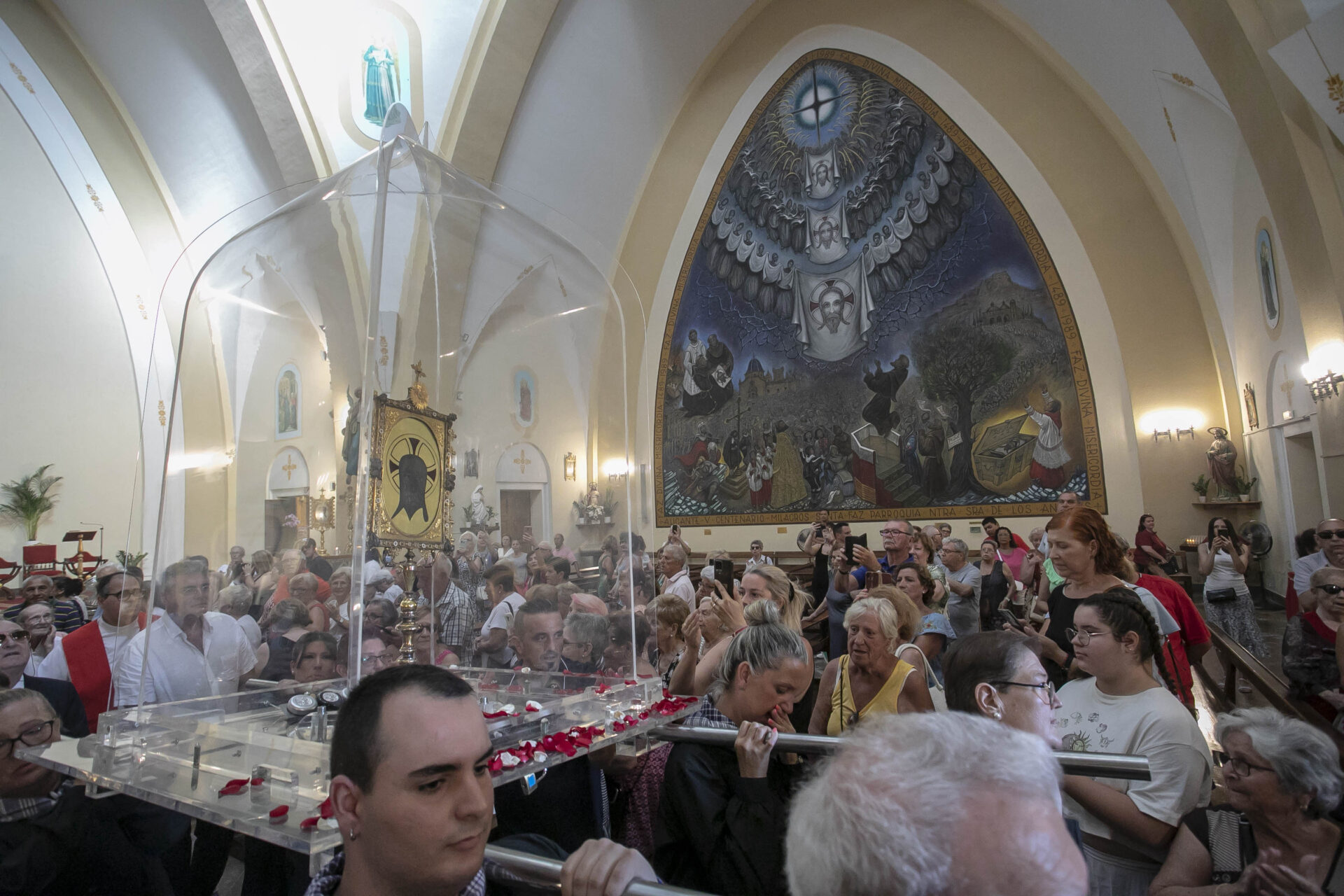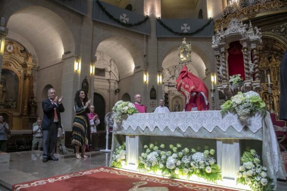 La Santa Faz podrá ser visitada este sábado, 5 de agosto, en la Concatedral. La Reliquia está situada en el baldaquino que preside el presbiterio. El horario matinal es de 8.30 hasta las 14 horas. Por la tarde, desde las 17 horas hasta el comienzo de la Misa de las 19 horas, previa a la Procesión, programada a las 20 horas. También, y cuando finalice, hasta la medianoche. Mañana, domingo 6 de agosto, desde la apertura del templo -8.30 horas- hasta que finalice la Misa de las 13 horas. A partir de ese momento la Santa Faz será trasladada al monasterio para, siguiendo el ritual, ser depositada nuevamente en su habitáculo hasta la Romería de 2024.