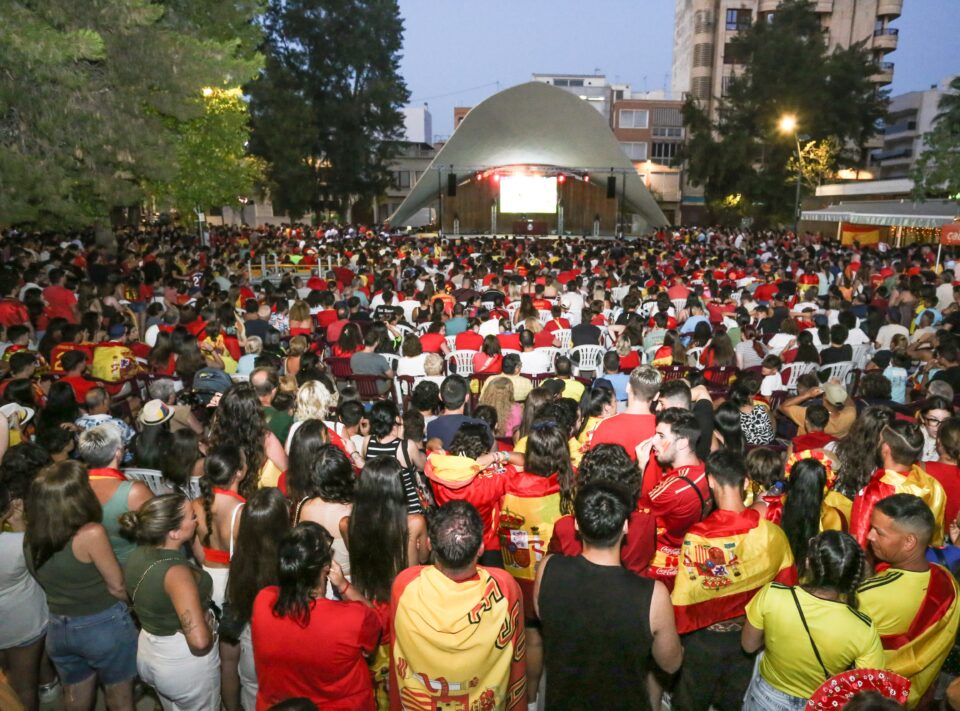 Más de 3.000 personas se dieron cita ayer en la Plaza Castelar para presenciar la final de la Eurocopa entre España e Inglaterra en la pantalla gigante instalada por el Ayuntamiento