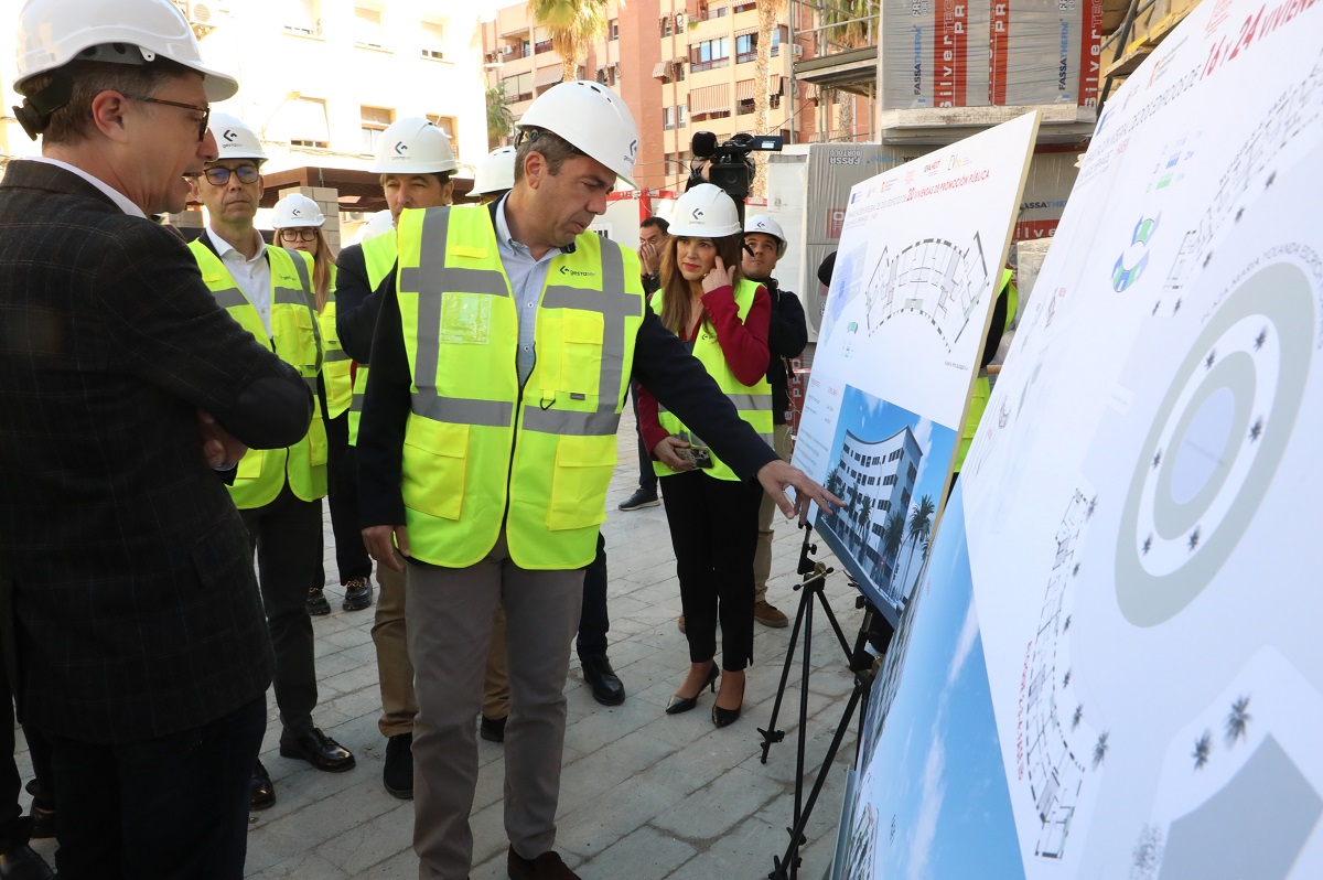 Mazón ha explicado que la reforma de estos inmuebles ubicados en la plaza Mª Yolanda Escrich Fornés, dotados con una inversión de 15,7 millones de euros, “progresa a buen ritmo” y ha anunciado que la primera fase “finalizará el próximo mes de junio con las primeras 20 viviendas”.