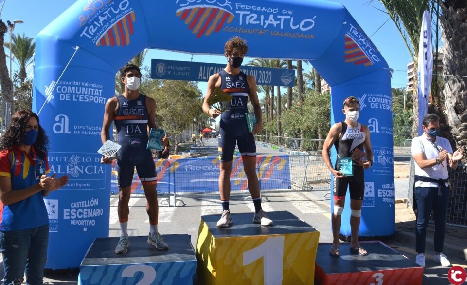 Los deportistas Adrián Sáez (Universidad de Alicante – UA), Luis Miguel Velasquez (UA) y Javier Carratalá (Arena) han subido al podio en la clasificación absoluta masculina.