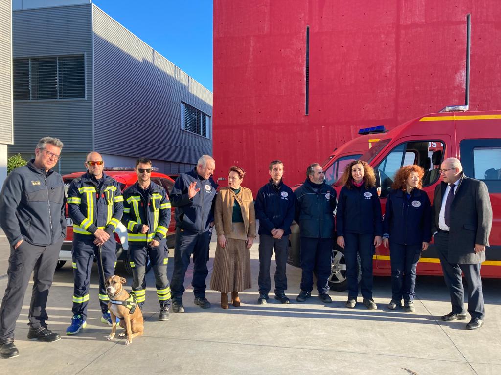 Alicante, a 13 de febrero de 2023. Los Bomberos y guías caninos del Servicio municipal de Prevención, Extinción de Incendios y Salvamento del Ayuntamiento de Alicante (SPEIS), Rafael Arnau y Ángel Moratalla, junto con su perra ‘Piña’, regresaron ayer a Alicante del viaje a Turquía donde han estado con un equipo del Grupo de Voluntariado GEA Alicante, para ayudar en labores de rescate de supervivientes del terremoto de Turquía.