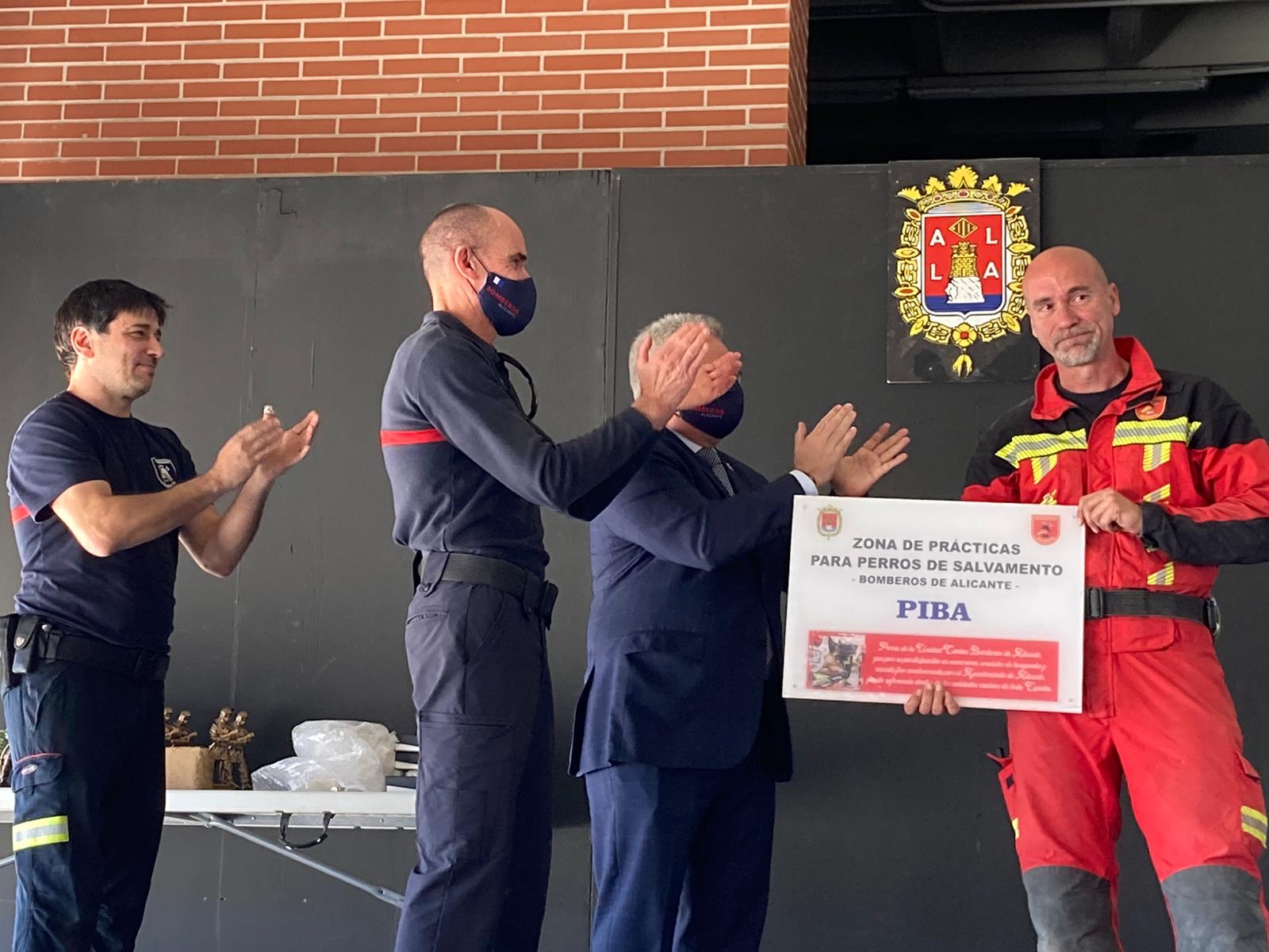 Asimismo uno de los momentos emotivos de la jornada llegó con el reconocimiento que se realizó en homenaje al perro de la Unidad Canina ‘Piba’ fallecido, que recogió el Bombero, Narciso Ayuso. Los Bomberos anunciaron que ponen su nombre a la zona de maniobras y simulacros de búsqueda y rescate en estructuras colapsadas y derrumbes del parque, denominado a partir de hoy como ‘Zona de Prácticas para perros de Salvamento PIBA’.
